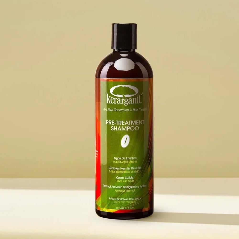 اغسلي شعرك مرتين أو ثلاث مرات باستخدام شامبو ما قبل المعالجة من كيرا أورجانيك (الخطوة 1) لإزالة الرواسب من فروة الرأس والشعر وإعداد الشعر لعلاج الكيراتين العضوي. ثم جففي بالمجفف بنسبة 80٪ إلى 90٪ وفكي تشابك الشعر بمشط.